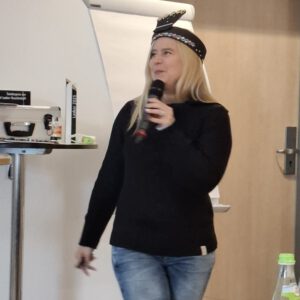 Laura Schalkhäuser berichtete für die Lasker-Gesellschaft von der Wichtigkeit des Mädchenschachs und wie sie mehr Mädchen zum Schach bringt. Dazu gehört auch ein Schachset mit lila Figuren, quasi ihr Markenzeichen. Sie betonte, dass man auch ungewöhnliche Aktionen anbieten muss, um Mädchen für Schach zu interessieren.