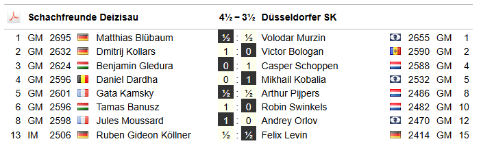 Schachfreunde Deizisau – Düsseldorfer SK 4,5 : 3,5