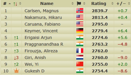 - Svane F. (2640) – Gukesh ( 2763): 1,5 zu 0,5