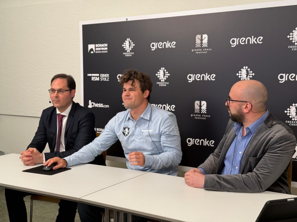 - einer der prägendsten Schach-Kommentatoren (vgl. Beitragsbild, mit Magnus Carlsen und Lawrence Trent beim grenke Schachfestival 2025)