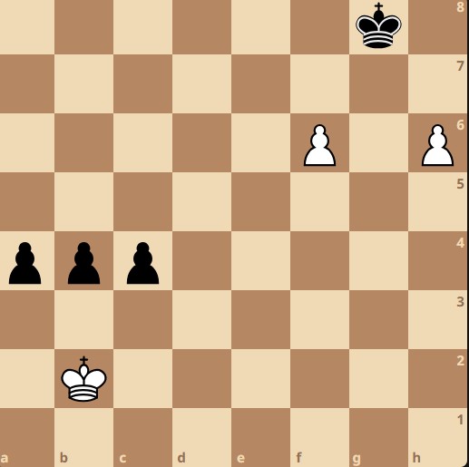 1. Im Schach entscheiden kleine Unterschiede über den Ausgang der Partie. Wenn in besagter Stellung Schwarz am Zug ist, dann gewinnt Schwarz. Wenn der weiße König statt auf b2 auf b1 steht und Weiß am Zug ist, dann kann er aufgeben. Ist mit dem weißen König auf b1 allerdings Schwarz am Zug, dann gewinnt wieder Weiß.