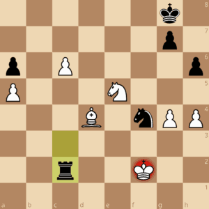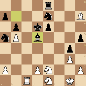 46.Ke3?? Sd5+ 47.Ke4 Sb4 verliert den kompensierenden c-Freibauern ersatzlos, Weiß gab auf. 46.Kf3 oder 46.Ke1 und die weiße Welt ist weiterhin in Ordnung.