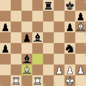 Schwarz zeigt Interesse am weißen a-Bauern, Weiß ignoriert das und re-zentralisiert seinen Läufer mit 26.Ld3. Warum er ihn zuvor mit 22.Lh7 (ohne einen Bauern zu schlagen) ins Abseits beordert hatte erschließt sich mir nicht, aber ich verstehe diese Stellung ohnehin nicht und bin auch kein Großmeister. Der schwarze Mehrbauer nach 26.-Lxa2 war eher nicht partieentscheidend, aber er hatte danach die viel besseren Figuren. „Auf den a-Bauern aufpassen“ (26.Sc3) war die bessere Wahl mit etwa ausgeglichener Stellung.