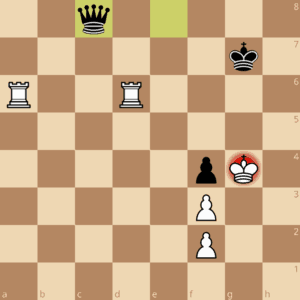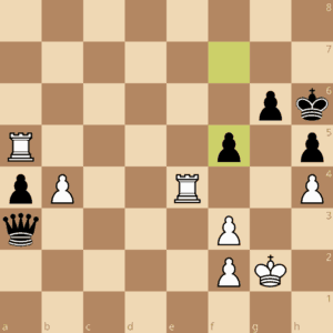 Zunächst deutete sich hier vielleicht ein „gepflegtes“ Remis an, dann bekam Weiß zwei Türme gegen Dame und es wurde spannend.