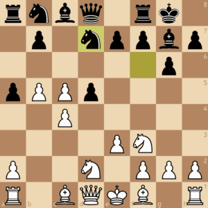 Bereits im 8. Zug griff der Isländer in einer etwas unorthodoxen Stellung daneben. Die Rückentwicklung 8.-Sfd7 war vielleicht „thematisch“, hier war die Konsequenz nach 9.La3! Lxa1 10.Dxa1 Qualitätsgewinn und Stellungsverlust. Richtig war hier 8.-Sbd7 – Weiß behält zwar seinen Mehrbauern aber Schwarz hat Kompensation.