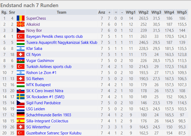 Das beste deutsche Team sind die Schachfreunde Berlin, die es auf Platz 17 geschafft haben.