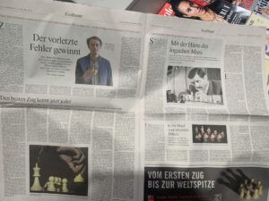 Stefan Löffler ist Journalist und kann fantastisch über Schach schreiben. Heute sind in der FAZ zwei Sonderseiten, leider sind die Artikel meist hinter eine Bezahlschranke versteckt, was o.k. ist.