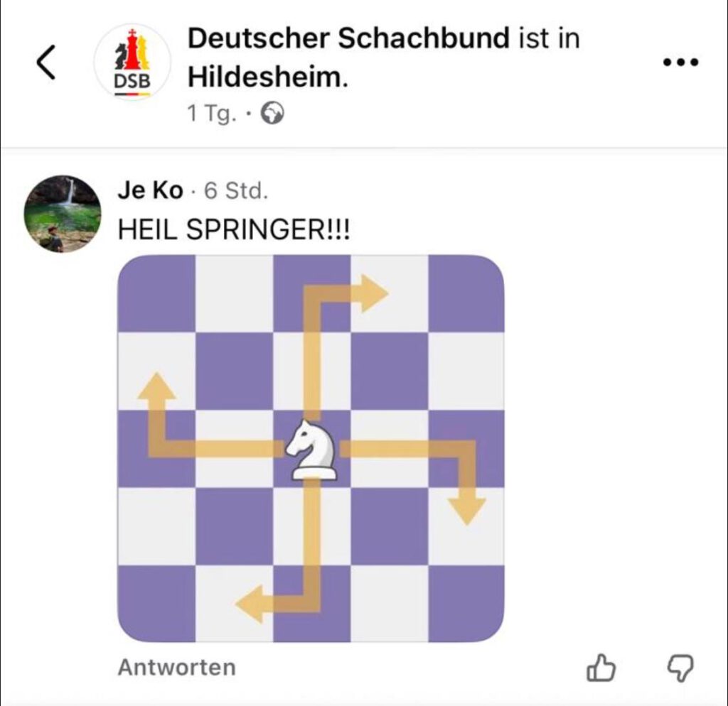 Leider habe ich mich geirrt. Beim Facebookeintrag des Deutschen Schachbundes gab es leider mehrere Entgleisungen, die nur Kopfschütteln erzeugen.