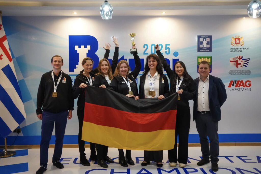 „Lange, sehr lange, mussten wir warten auf dieses Ereignis. Erst viermal gewannen die deutschen Frauen eine Medaille bei großen internationalen Mannschaftswettbewerben vor dieser Europameisterschaft. 1957, 1963 und 1966 holte die DDR Bronze bei der Schacholympiade der Frauen, 1978 gewann die BRD ebenfalls Bronze. Danach blieben die deutschen Frauen 47 Jahre lang ohne einen Platz auf dem Treppchen. Nun ist der Knoten geplatzt und Dinara Wagner, Hanna Marie Klek, Josefine Safarli, Lara Schulze und Kateryna Dolzhykova traten heute in Batumi die Nachfolge der Medaillengewinnerinnen von damals an. Und es ist die erste Medaille bei der seit 1992 zum sechzehnten Mal ausgetragenen Mannschafts-Europameisterschaft!“