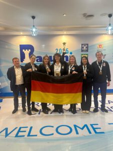 Unsere Mannschaft bestand aus Dinara Wagner, Hanna Marie Klek, Josefine Safarli, Kateryna Dolzhykova und mir. Captain war unser Bundestrainer Zahar Efimenko und zusätzliche Hilfe bekamen wir von unserem zweiten Trainer Wolodymyr Baklan.