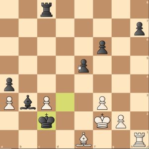 Mein Gegner spielte hier den Zug 37.d5, um etwas Gegenspiel mit dem d-Bauern zu erzeugen. Doch dieses Gegenspiel konnte ich im Keim ersticken, denn es funktioniert 37…Lxd5. Der Läufer darf nicht geschlagen werden, da Tc1+ Grundreihenmatt setzt. Wenig später konnte ich die Partie gewinnen und einen entscheidenden ganzen Punkt zu unserem nächsten Mannschaftssieg beitragen.