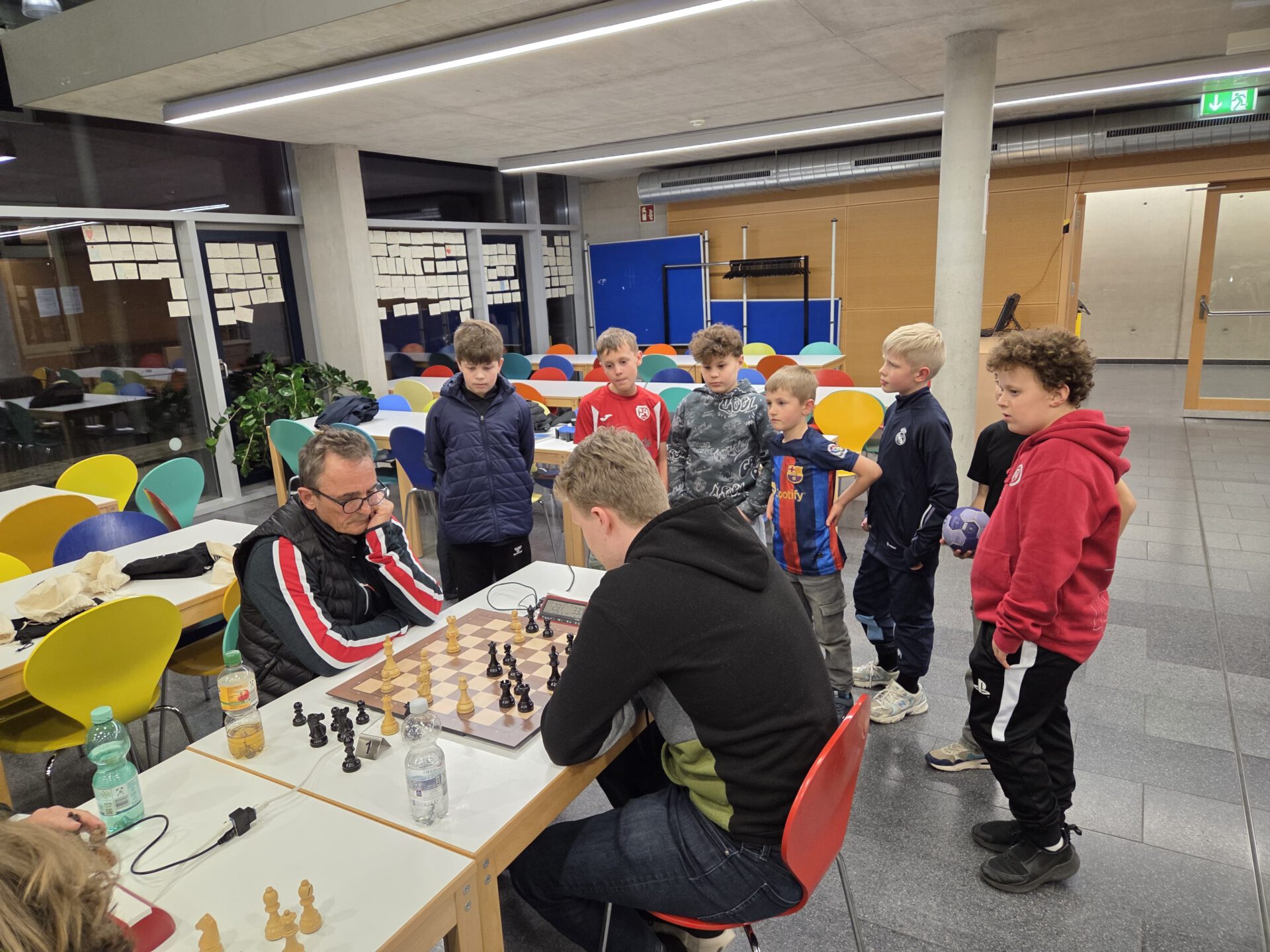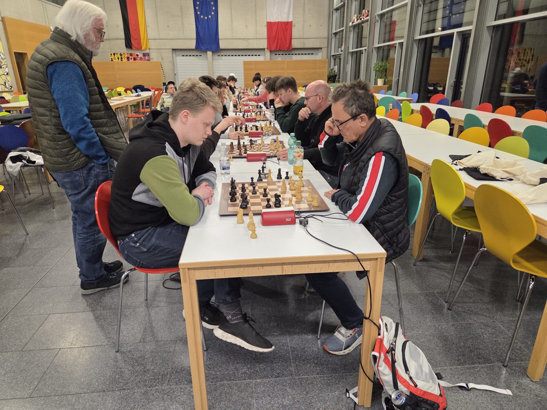 Ein paar neugierige Zuschauer hatten wir auch von der benachbarten Handballspielertruppe. Die hatten sogar einen Hamburgertruck zu ihrem Heimspiel bestellt, sehr praktisch auch für hungrige Schachspieler.