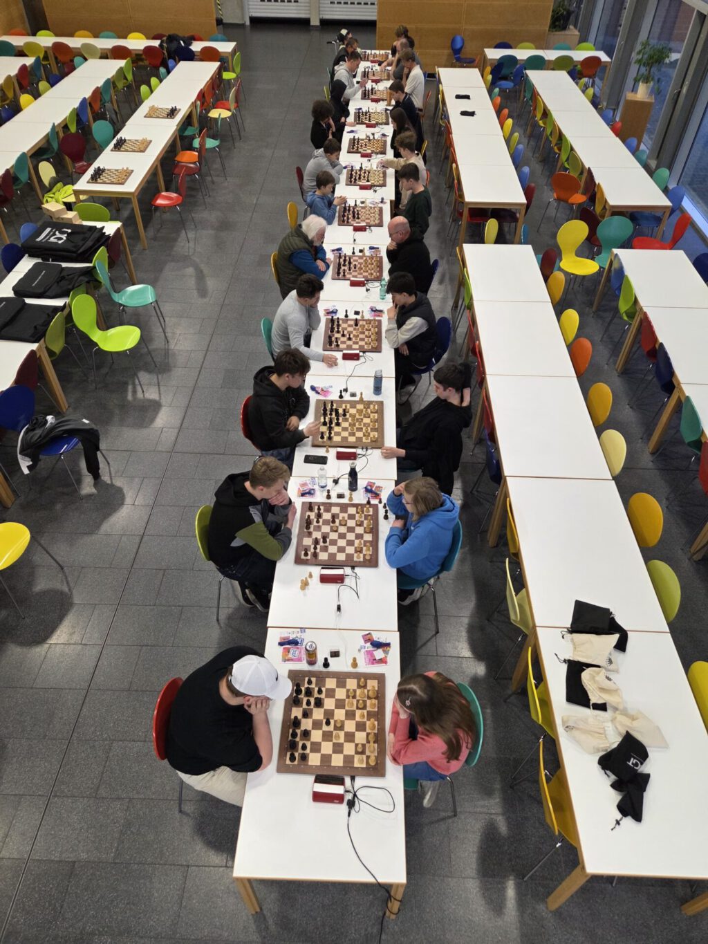 Ein paar neugierige Zuschauer hatten wir auch von der benachbarten Handballspielertruppe. Die hatten sogar einen Hamburgertruck zu ihrem Heimspiel bestellt, sehr praktisch auch für hungrige Schachspieler.