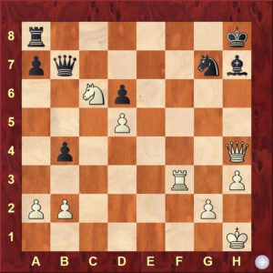 02) 1. Da4+ Txa4 (1.. b5 2.cxb6+ Kf8 3.Dxa8+) 2.c8 Dame ++