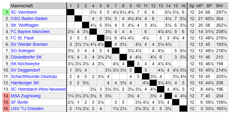 Die Saison endet mit dem großen Finale – der Endrunde in Berlin vom 24. bis 26. April. Dort stehen gleich drei Spieltage auf dem Programm. Deizisau trifft dabei auf MSA Zugzwang, den Düsseldorfer SK sowie die SG Solingen. Um nicht doch noch in ernsthafte Abstiegsgefahr zu geraten, sollten möglichst zwei Mannschaftspunkte eingefahren werden.