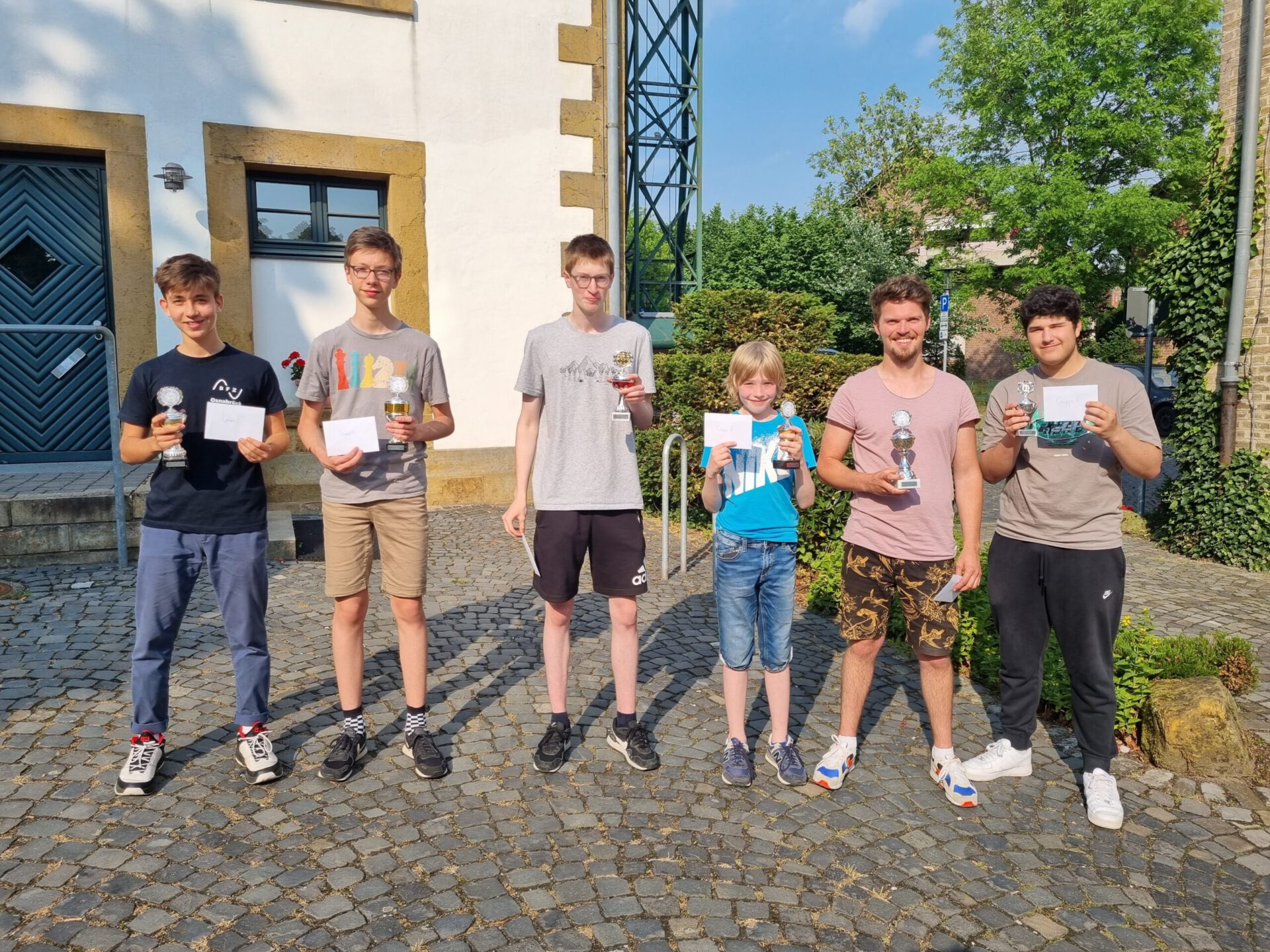 Die Sieger (von links nach rechts): Gruppe C – Victor Vassiliev, Gruppe A – Max Storm, Gruppe E – J.H., Gruppe B – Florian Schröder, Gruppe D – Alex Gresselmeier, Gruppe F – Ekin Caylak