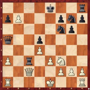 04) 1.Da4+!! Dxa4 2.b8 Dame Tc8 3.Lb5 Kf8 4.Dxc8 Lxc8 20. Lxa4