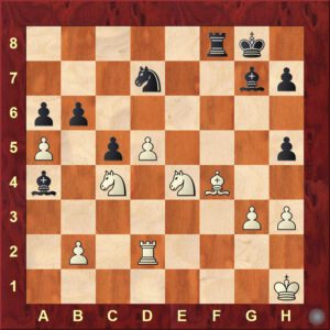 5. 1.Lxh7+ Sxh7 2.Fxf7+ Kxf7 3.fxe3 Sf6 4.Txc5