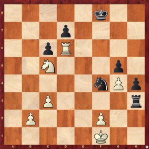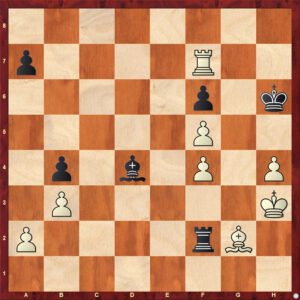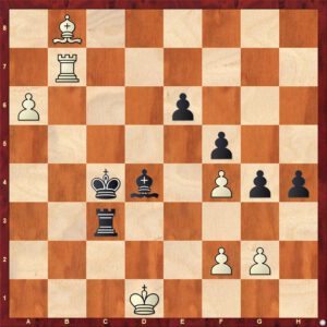 01) 1.Tf6 Ke8 2.TxSf4 gxf4 3.Kg2!! d6 4.Kxh3 dxc5 5.Kxh4 +-