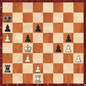 02) 1.Kb3! Txa5 2.c4! d5 3.d3 dxc4 4.dxc4 Kb7 4.h4 +-