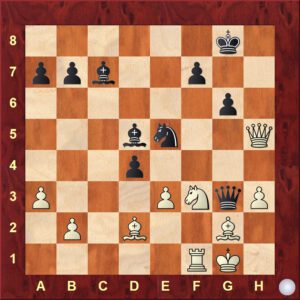 Schwarz am Zuge: 17.. La4 18. Lxa4 Sxa4 19. Sc4