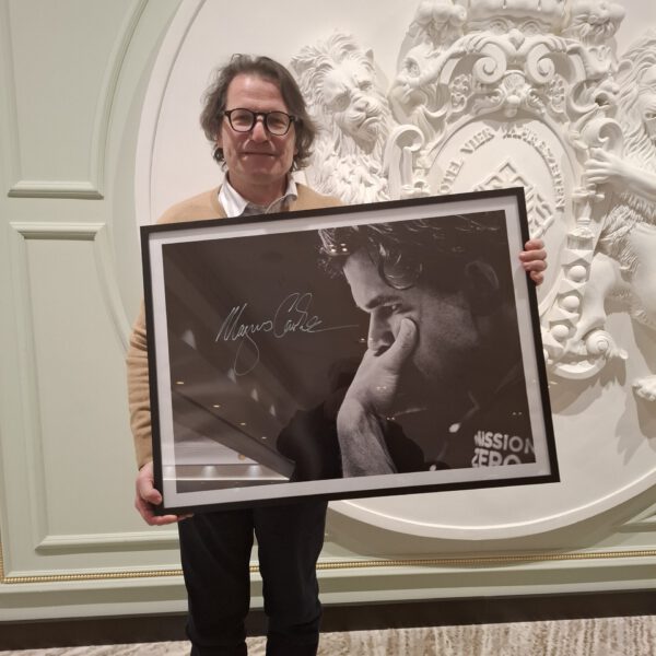 Eine gute Investition, wie wir meinen, denn hier kommt einiges zusammen: der beste Schachspieler der Welt photographiert vom wohl besten Schachphotographen der Welt (neben dem Spanier David Llada), mit einer Original-Unterschrift von Magnus, somit ein Unikat. Hier kann man wohl mit Fug und Recht von einer soliden Wertanlage sprechen. Natürlich war der Gewinner der Auktion überglücklich, dass er den Zuschlag erhalten hatte, und verriet uns, dass er sogar noch mehr geboten hätte, um sich das begehrte Bild zu sichern.