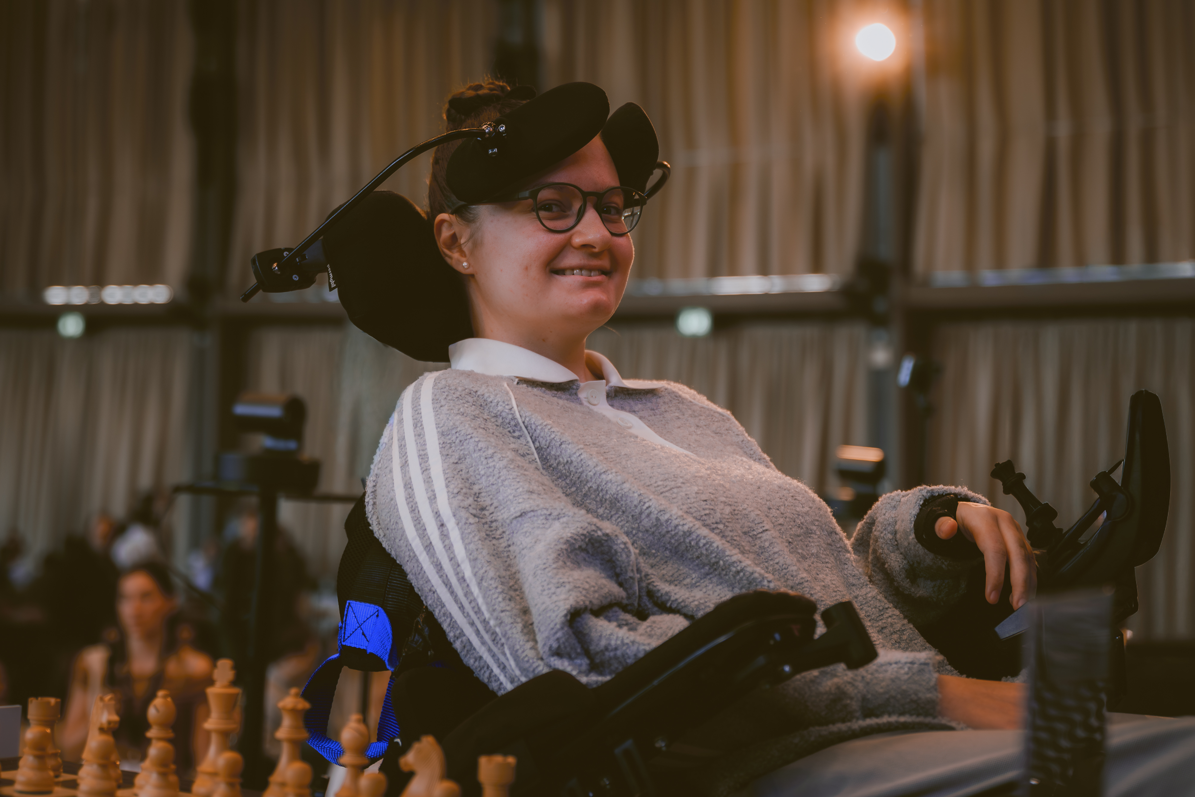 Einen der bewegendsten Momente des Turniers lieferte Johanna Schmidt. Die deutsche Vize-Meisterin im Kickboxen sitzt nach einer Krankheit im Rollstuhl und wurde in die World Chess Hall of Fame in St. Louis aufgenommen. Sie durfte die Startposition auslosen.